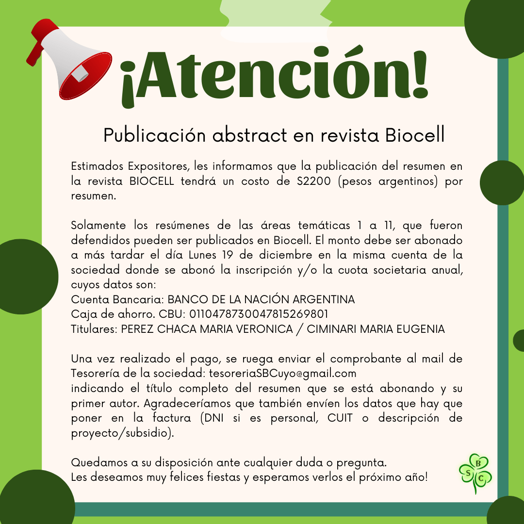 Novedades sobre 👉 Publicación abstract en revista Biocell