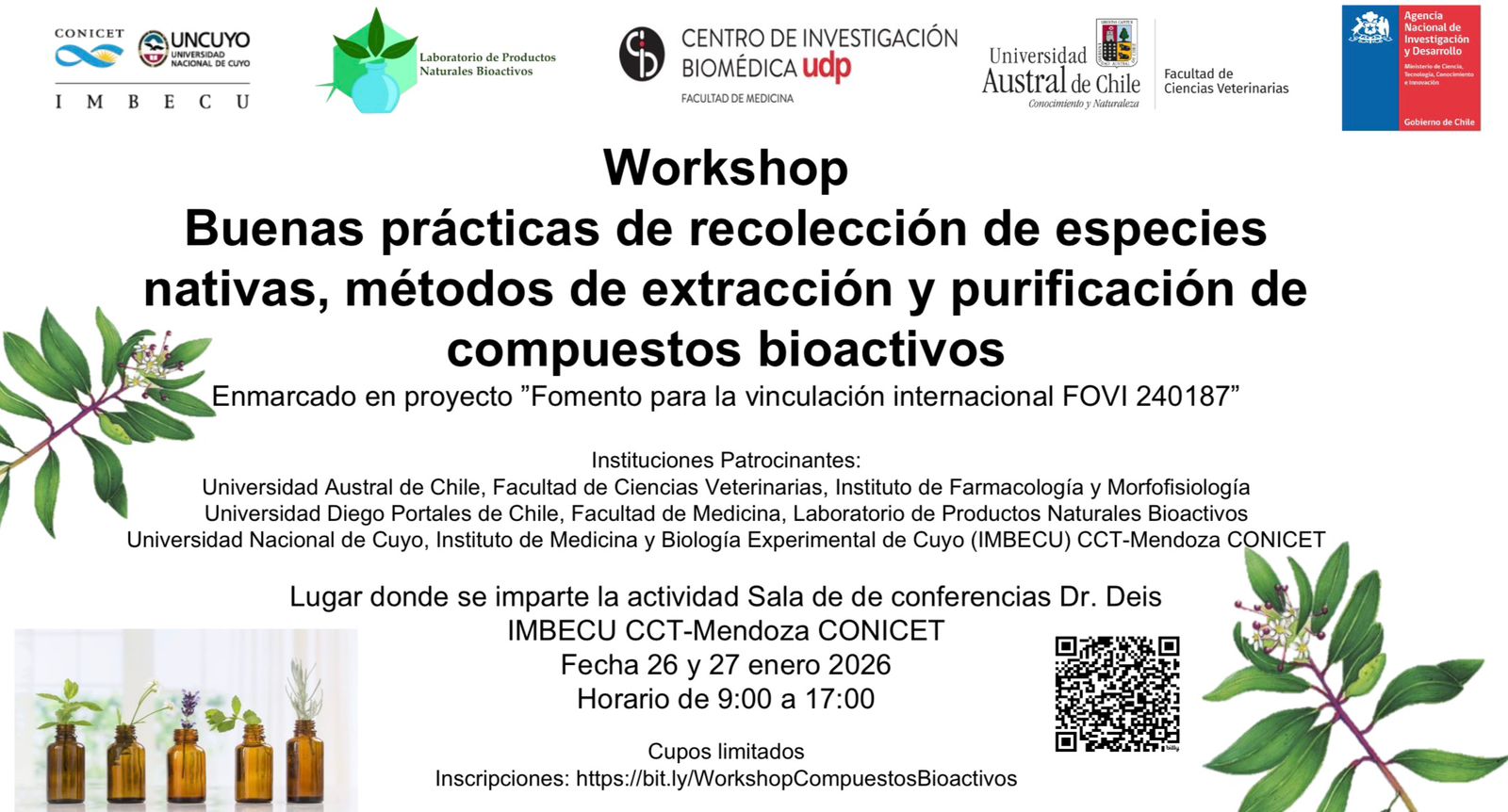 La Sociedad de Biología de Cuyo invita a la comunidad académica y científica a participar del Workshop “Buenas prácticas de recolección de especies nativas, métodos de extracción y purificación de compuestos bioactivos”, una actividad orientada a fortalecer el intercambio de conocimientos y la formación técnica en el área de productos naturales y bioactivos.